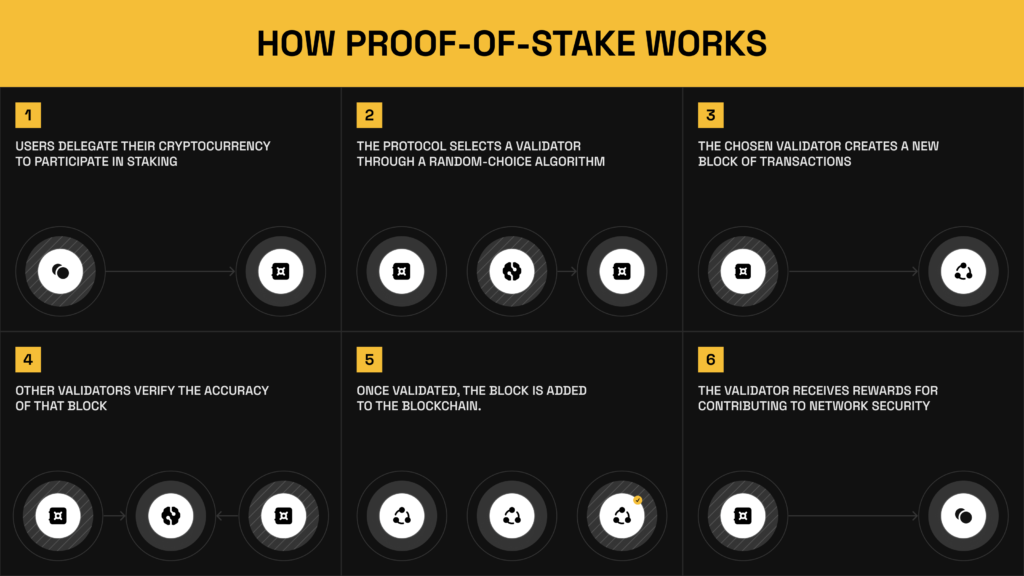 Staking, therefore, is what enables users to become validators. By depositing a certain amount of tokens, they can participate directly in securing the network. In most cases, the more tokens staked, the higher the chance of being selected to validate the next block. However, randomness is built into the system to ensure fairness and decentralization.