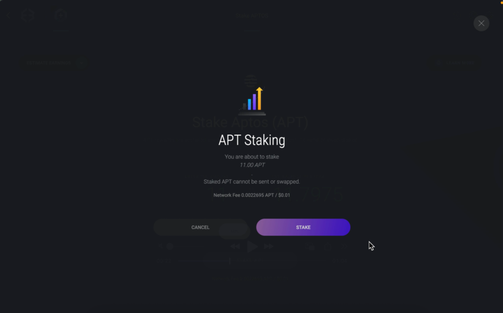 - A confirmation window with a Success message appears. Your APT is now officially staked!