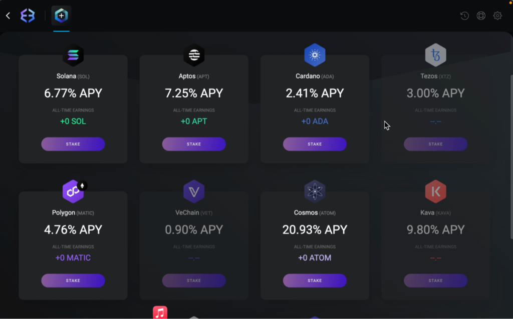 - On the top menu, click the Staking icon (the stacked-cube symbol).