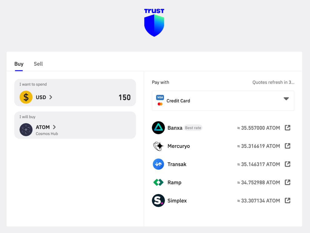- To buy ATOM with fiat, click Buy in the ATOM wallet. Then, select a payment service from the list and proceed with your payment using your payment card.