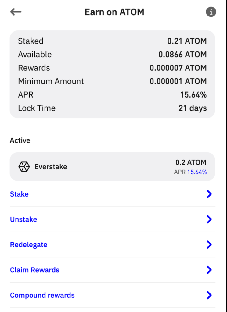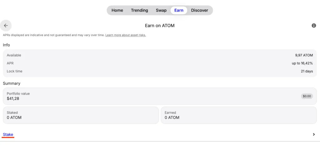 - Stake: to stake more ATOM