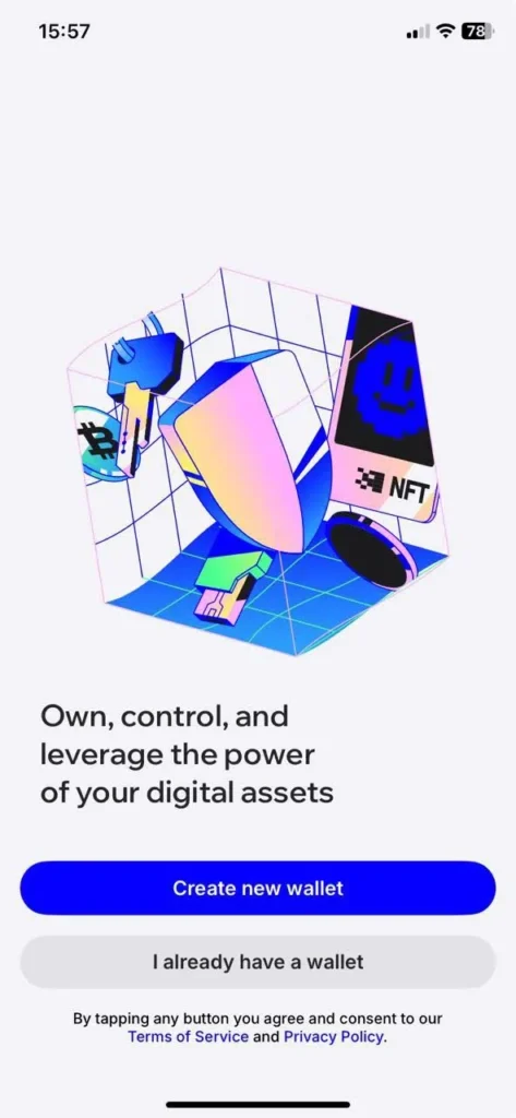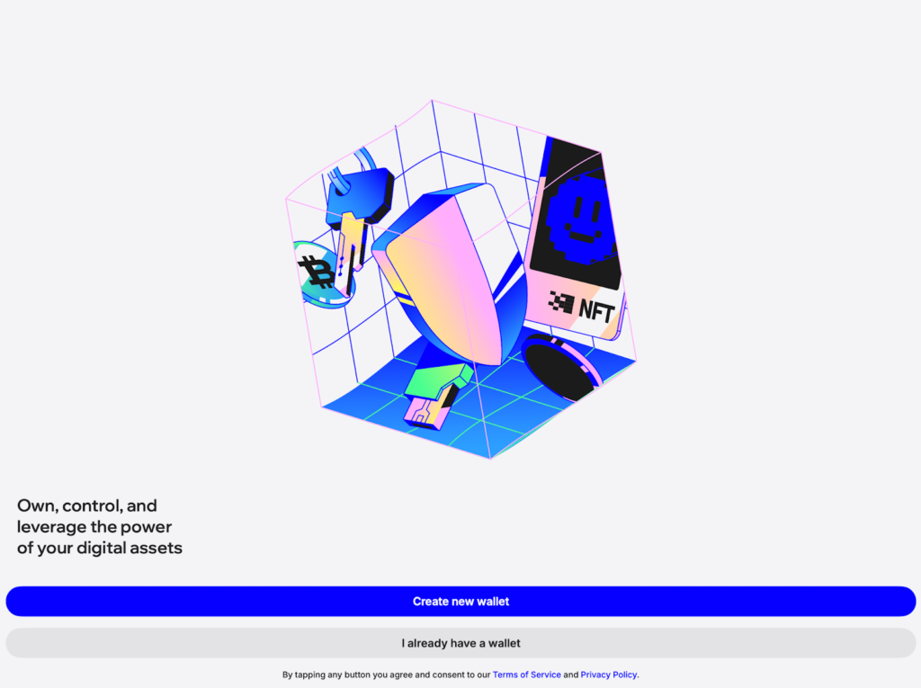 - Once the extension is downloaded and installed, open it, agree to the Terms, and select Create new wallet to set up your account. If you already have a wallet, you can import an existing wallet instead.