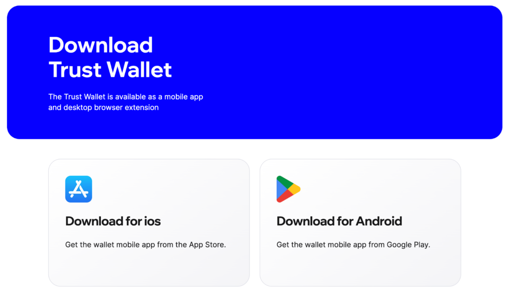 - Navigate to the Download page of Trust Wallet and download the Trust Wallet Mobile application for Android or iOS.