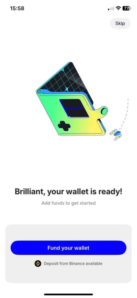 Your wallet is ready to go! Click Fund Your Wallet to get started.