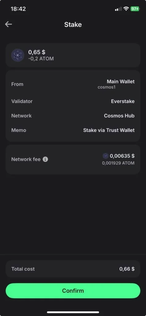 - Review everything and press Confirm to complete the staking transaction.