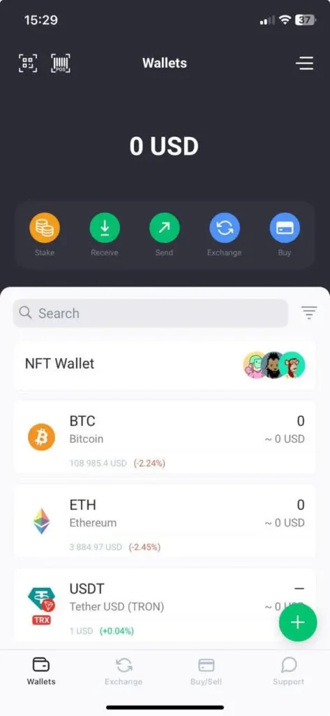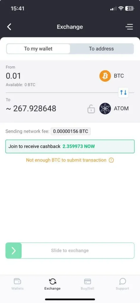 - Built-in exchange, swap one cryptocurrency for another within the app.