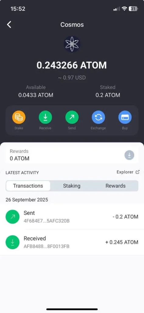 - Flexibility – unlike some blockchains, ATOM remains liquid: you can delegate, redelegate, or unstake with full transparency.