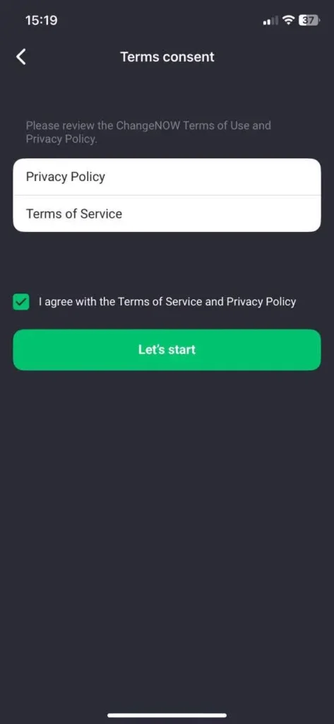 - Confirm the terms and continue.