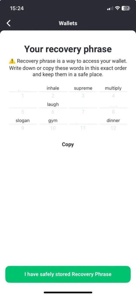 - Store a recovery phrase in a reliable place, preferably offline, written on a paper, then confirm you’ve copied the phrase.