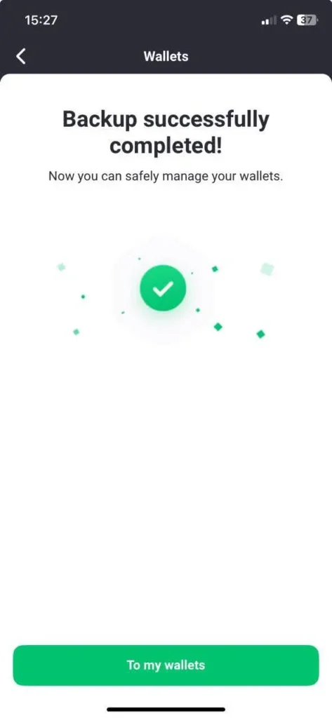 Congratulations! Your account has been successfully backed up! You can now open your Now wallet.
