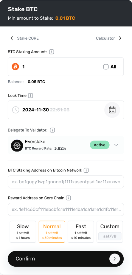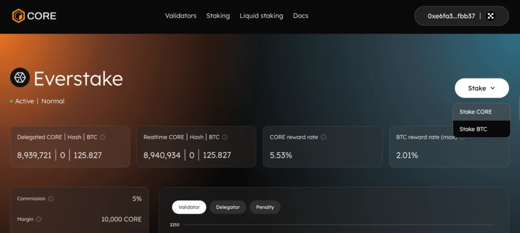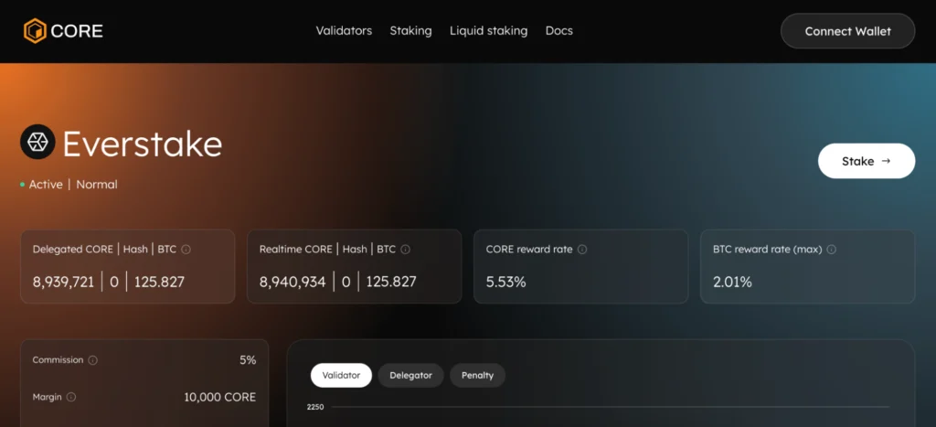 Through trusted validators like Everstake, the process is straightforward: connect your wallets, set your parameters, confirm the transaction, and track your rewards. BTC staking with CoreDAO not only strengthens the network but also allows you to make your Bitcoin work for you in a secure, non-custodial way.