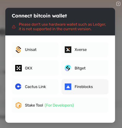 - To connect your Bitcoin wallet, select it from the supported options — for example, Unisat Wallet.