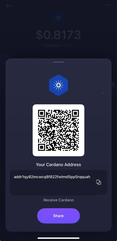 - Scan the QR code or copy your address to send funds from another wallet or exchange.