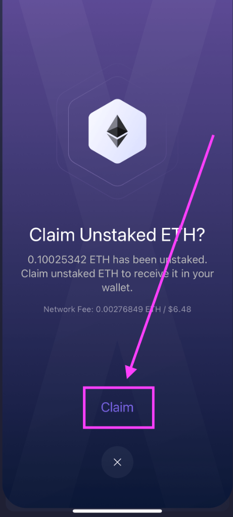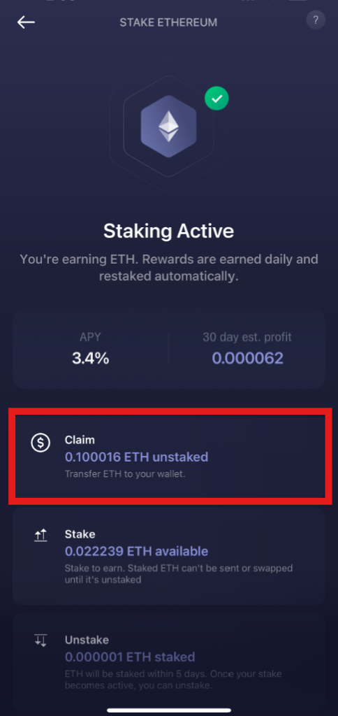 When unstaking completes, claim your unstaked ETH to return it to your wallet balance.