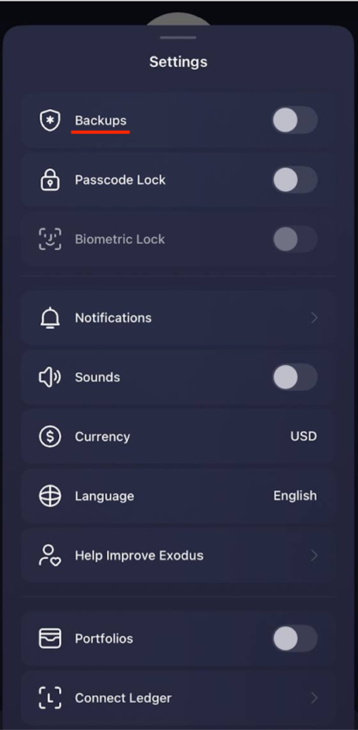 - At the top, you’ll see: Backups, Passcode Lock, and Biometric Lock.