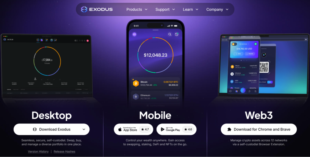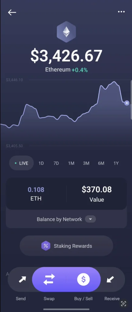Exodus is a multi-currency, self-custodial cryptocurrency wallet available on both desktop and mobile platforms. It supports hundreds of assets and provides a straightforward interface for managing, purchasing, and staking cryptocurrencies. With built-in staking functionality, Exodus allows you to delegate ETH and track rewards without relying on third-party services.