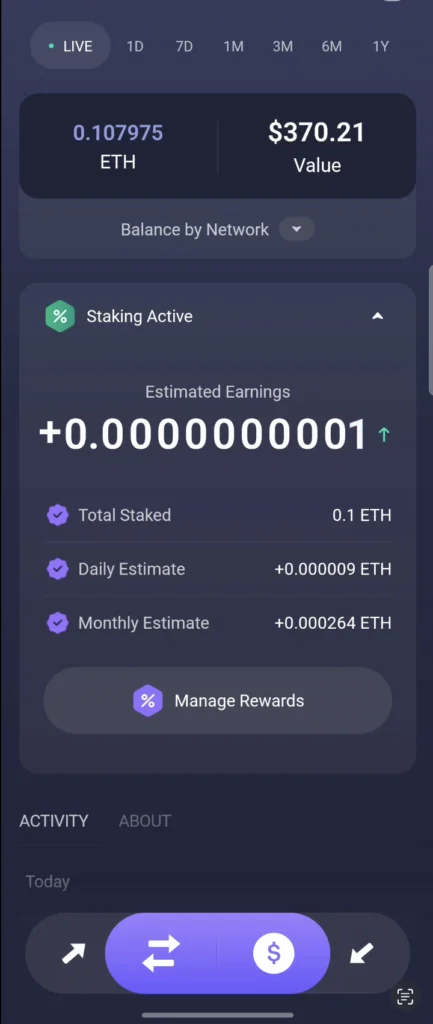 Once your wallet is backed up and secured with a passcode or biometrics, you can start staking.