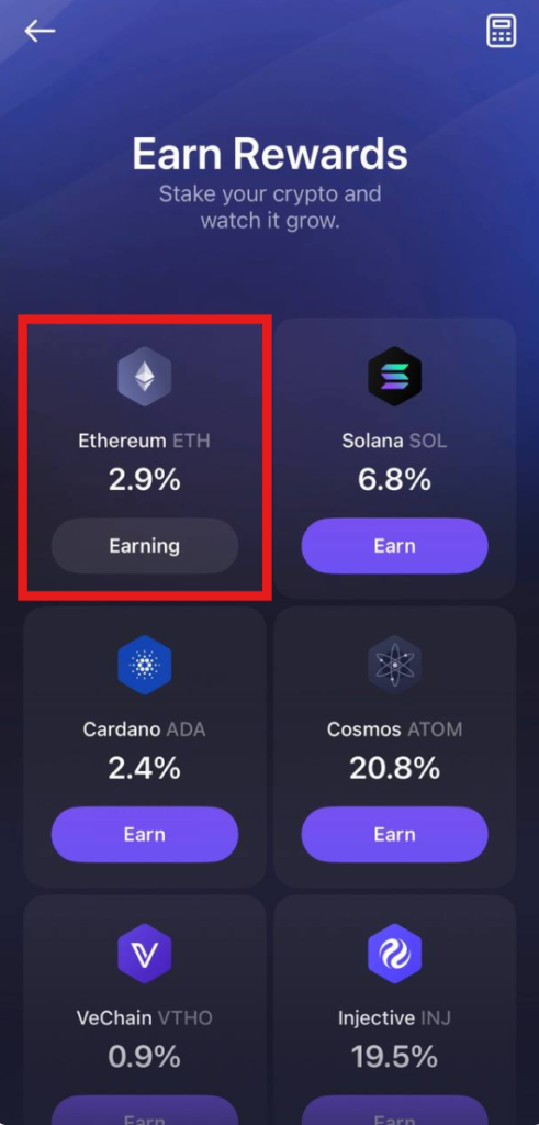 - On the main Portfolio screen, scroll through your asset list and tap Ethereum (ETH).