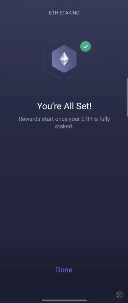 That’s it, your ETH is now staked and working in the background. With Exodus, it really comes down to just a few taps. From here, you only need to check in once in a while to see your rewards or decide if you want to unstake some of your balance.