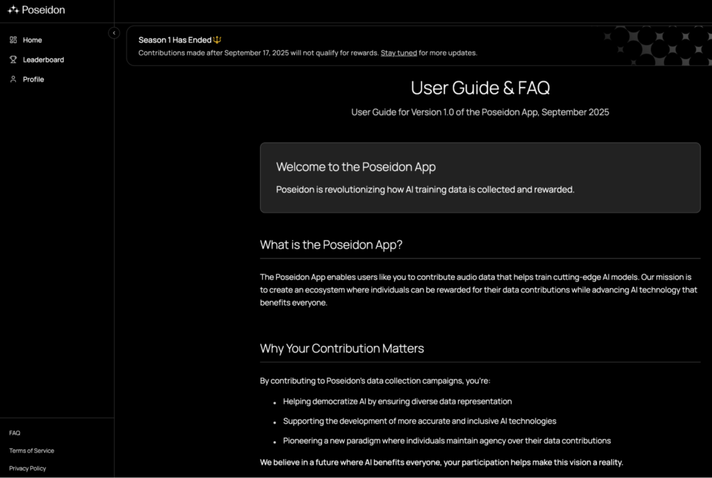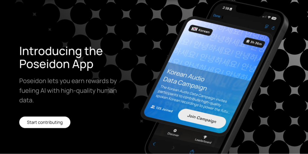 Poseidon has already launched its app experience, inviting participants to contribute human-data tasks and earn rewards. On its website, Poseidon describes the app as enabling the collection of structured datasets with “clear ownership, licensing, and provenance enshrined.”